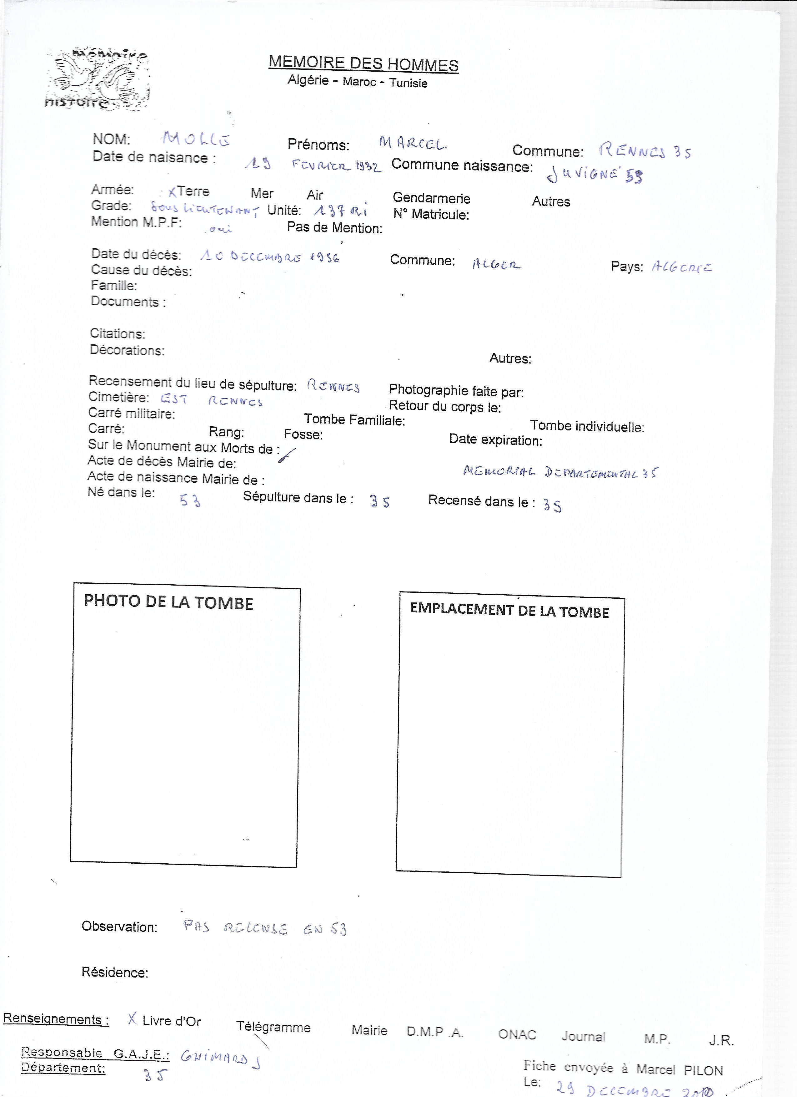 Nom, prénom : MOLLE Marcel