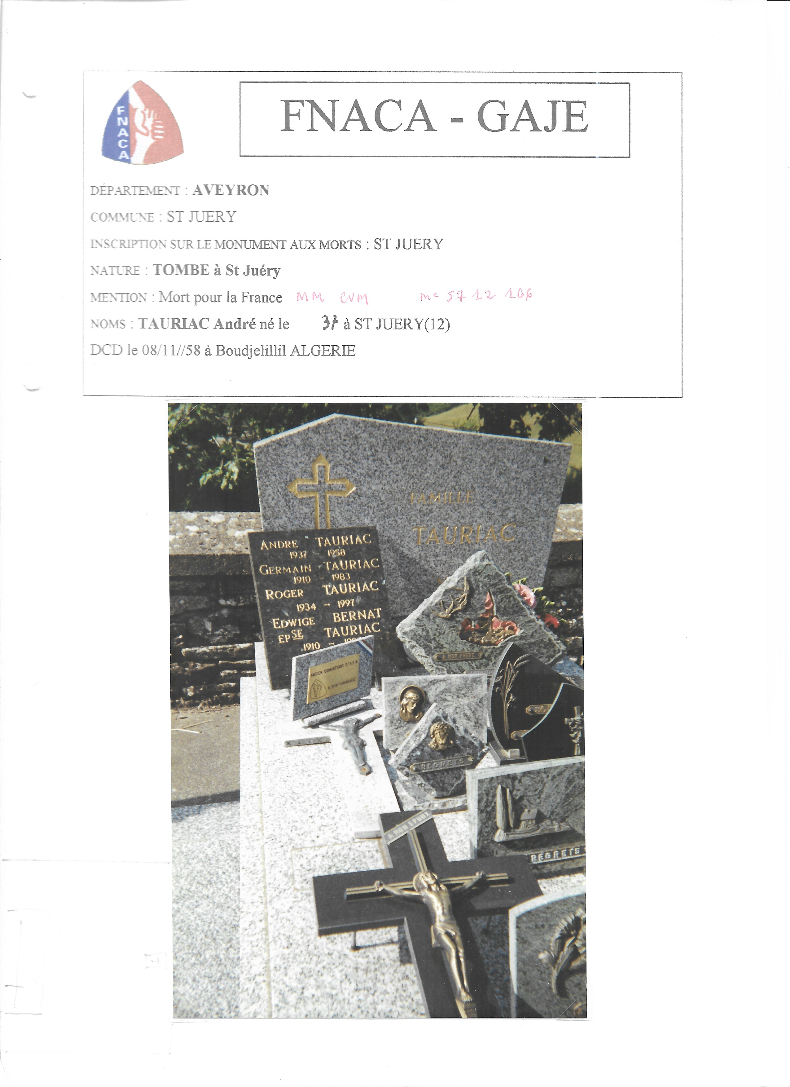 Nom, prénom : TAURIAC André
