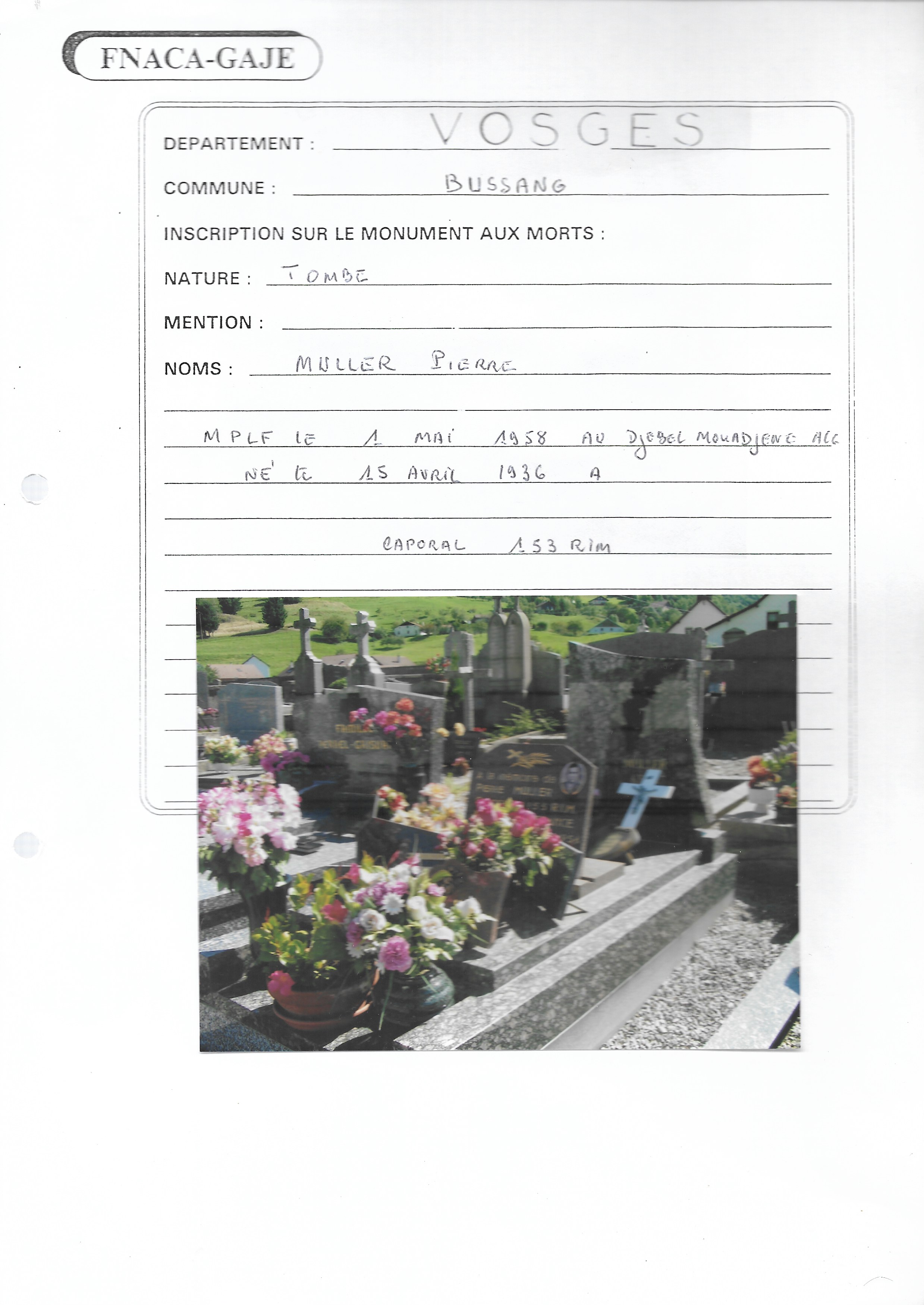 Nom, prénom : MULLER Pierre